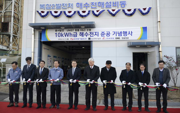 한국동서발전은 지난 17일 오후 3시 울산화력본부에서 울산과학기술원과 산학협력 과제를 통해 개발한 '10kWh급 해수전지 에너지저장시스템(ESS) 설비' 준공 기념행사를 개최했다고 밝혔다.