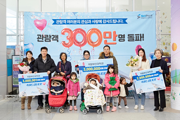이날 300만번째 관람객인 이동근(부산시 강서구 거주)씨 가족에게는 30만원 상당의 문화상품권과 교육용 코딩로봇, 과학관 캐릭터 기념품, 과학관 상설전시관 및 특별기획전 무료초대권 20매 등이 제공됐다.