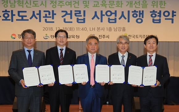 경남도는 18일 도교육청, 진주시, LH와 함께 혁신도시 정주여건 개선을 위해 공공기관 지역발전사업으로 추진 중인 복합문화도서관의 사업시행 협약을 체결했다.