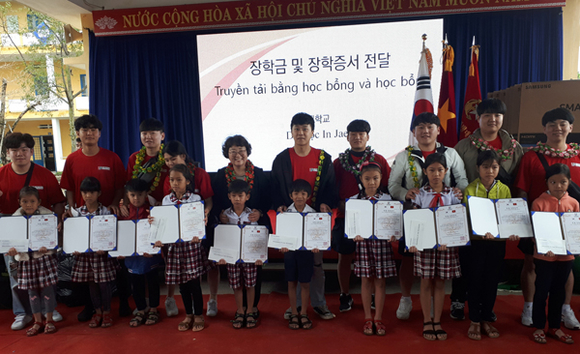 지난 15일 학생들은 십시일반 모은 3,000만동(한화 약 150만원)과 학용품 60세트를 베트남 광남성 판탄타이 초등학교 현지 학생들에게 전달했다.