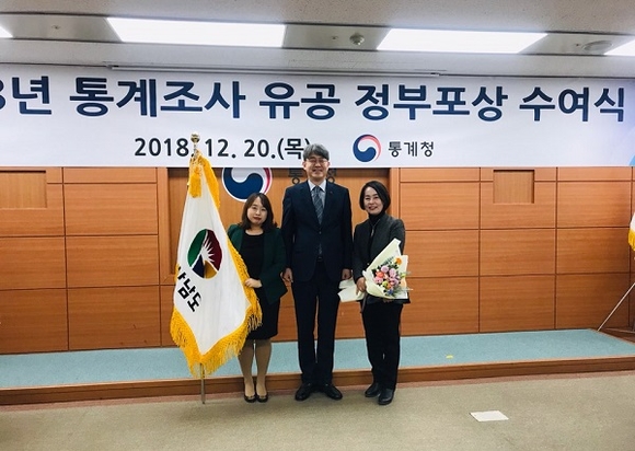 경남도가 '2018년 통계조사 유공 최우수 기관'으로 선정돼 20일 정부대전청사에서 대통령 표창을 수상했다.