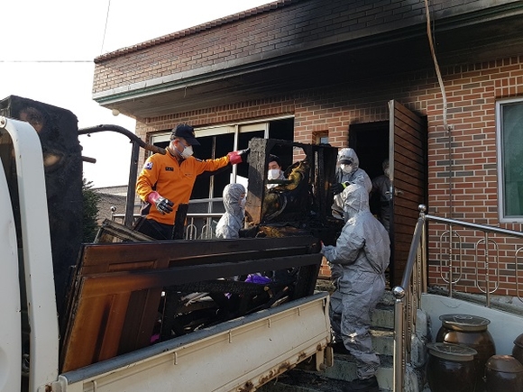 지난 19일과 20일, 밀양소방서와 밀양시 의용소방대, 부북면대, 부북면 행정복지센터는 17일 일어난 주택화재로 내부가 소실돼 어려움을 겪고 있는 장애인 세대를 찾아 청소 봉사활동을 실시했다.