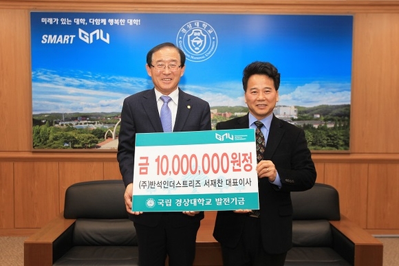 경상대학교는 김해시 소재 (주)반석인더스트리즈가 대학발전기금 1000만 원을 출연했다고 24일 밝혔다.