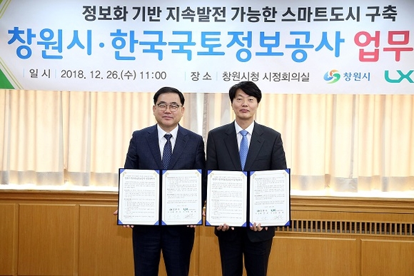 경남 창원시는 26일 한국국토정보공사(LX)와 공간정보를 기반으로 하는 스마트도시 조성을 위한 업무협약을 체결했다.
