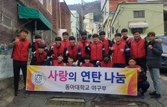 동아대학교는 야구부 지도자와 선수 등 34명이 부산 서구 아미동에서'사랑의 연탄나누기' 봉사활동을 실시, 모두 20가구에 연탄 2,000장을 전달했다고 26일 밝혔다.
