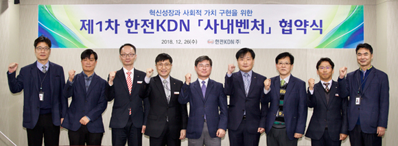 한전KDN은 26일 나주 본사에서 '제1차 사내벤처 협약식'을 개최했다고 밝혔다.