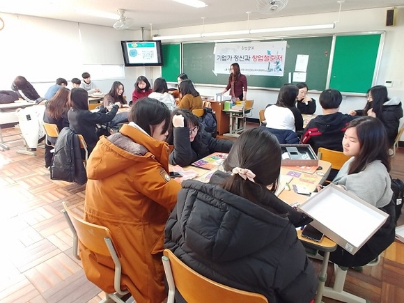 와이즈유가 섭외한 전문 강사들은 해당 고교를 방문해 기업가 정신(1교시), 아이디어 확장(2교시), 창의력과 아이디어 발상(3교시), 창의적 문제 해결법(4교시) 등으로 구성해 강의 및 학습교구·교재를 활용한 체험 프로그램 형식으로 진행됐다.