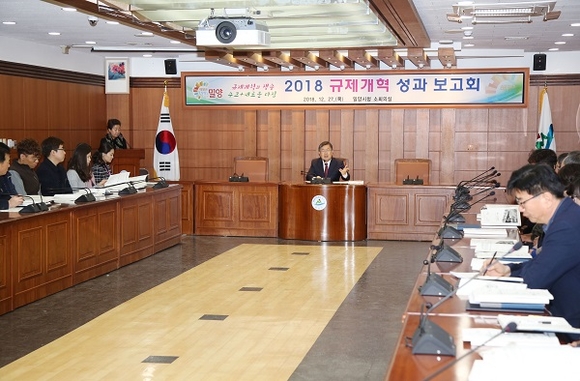 경남 밀양시는 27일 시청 소회의실에서 2018 규제개혁 성과보고회를 가졌다.