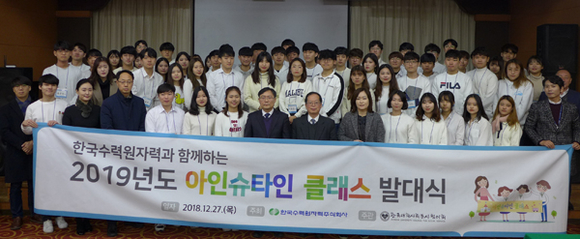 한국수력원자력이 지난 27일 경주 포시즌 유스호스텔에서 '아인슈타인 클래스' 발대식을 열었다고 밝혔다.