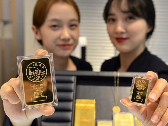 롯데백화점 부산본점 골든듀 매장에서는 오는 2일부터 20일까지 황금돼지해를 기념해 돼지 그림이 새겨진 37.5g과 100g 두 종류의 순금 Gold Bar를 선보인다. 골드바를 구매하는 고객에게는 LED 손거울과 하이그로시 보석함 1단도 각각 증정한다. (사진=롯데쇼핑 제공)