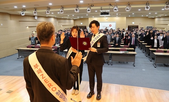 국민건강보험공단 부산지역본부는 2일 오전 본부 1층 대회의실에서 2019년도 시무식 행사에 참여한 직원 170여명을 대상으로 임직원 윤리 및 준법경영을 통한 부패방지 및 깨끗한 공직풍토조성, 고객제일주의 실천을 위한 윤리경영 실천 결의대회를 실시했다. (사진=건보공단 부산본부 제공)
