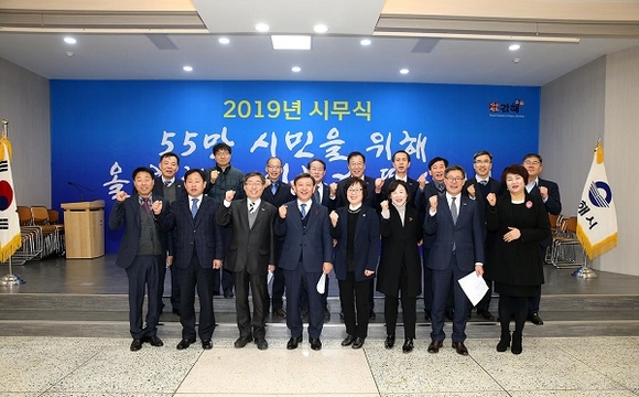 경남 김해시는 2일 오전 시청 대회의실에서 허성곤 시장을 비롯한 전 직원이 참석한 가운데 2019년 시무식을 갖고 기해년 새해 업무를 시작했다.
