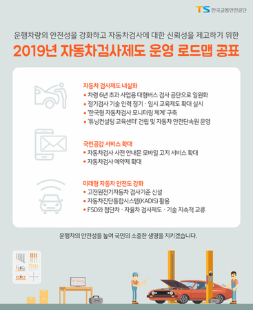 한국교통안전공단은 2019년 기해년을 맞아 운행차량의 안전을 강화하고 자동차검사에 대한 신뢰성을 제고하고자, 올해의 자동차검사제도 운영 로드맵을 4일 공표했다.