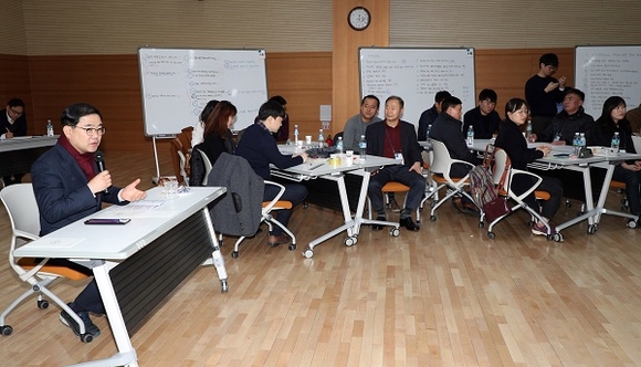 워크숍은 지난해 11월 22일부터 오는 18일까지 총 8기에 걸쳐 직원 288명이 참여해 진행되고 있다. 9일에는 허성무 창원시장이 워크숍 참여 직원들과 함께 소통하는 시간을 가졌다.