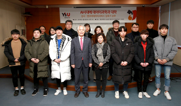 와이즈유(영산대학교)가 지난 9일 양산캠퍼스 성심관에서 데이터 분석기업 엔코아의 김옥기 상무를 초청해 'AI시대의 데이터 과학과 대학'이라는 주제로 경제 및 IT트렌드, 4차 산업혁명, 데이터 경제, 데이터 과학 등에 대해 특강을 진행했다고 10일 밝혔다.
