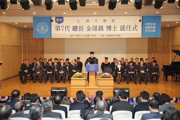인제대학교는 제7대 총장 김성수 박사의 취임식을 14일 김해캠퍼스 장영실관 대강당에서 열렸다고 밝혔다.