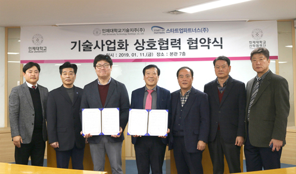 인제대학교 기술지주(주)와 스타트업파트너스(주)는 지난 11일 본관 세미나실에서 바이오 및 의료, 4차산업 기술개발과 사업화를 위한 업무협약을 체결했다고 16일 밝혔다.