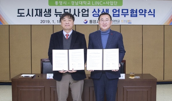 경남 통영시는 시 도시재생 뉴딜사업의 성공적인 추진을 위해 지역대학인 경남대학교 LINC+사업단과 지난 18일 업무협약을 체결했다.
