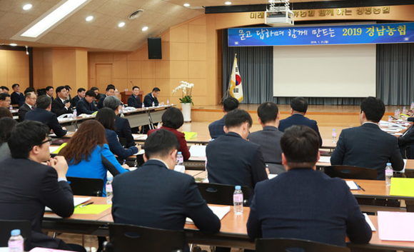 경남농협은 지난 21일 경남농협지역본부에서 신년 업무보고회 '묻고 답하며 함께 만드는 2019 경남농협'을 개최했다.