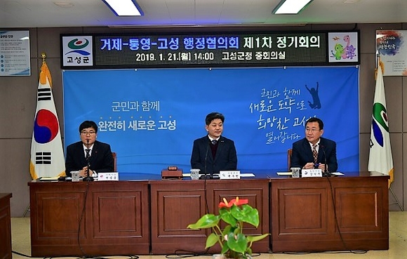 경남 거제시, 통영시, 고성군은 21일 고성군청에서 거제-통영-고성 3개 시·군 행정협의회의 제1차 정기회의를 갖고 공동 정책 안건을 심의했다.