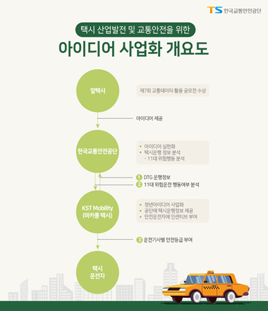 아이디어의 주요내용은 ▲택시 운행자료 수집해 ▲자료 분석을 통해 택시 운전자별 안전등급을 부여하고 ▲안전등급이 높은 경우 운전자에게 인센티브를 제공하는 것을 골자로 한다.