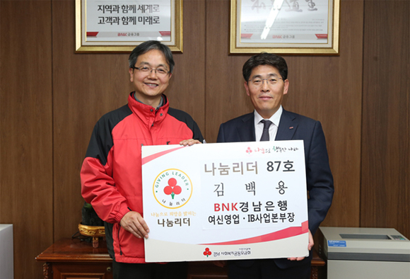 BNK경남은행은 여신영업본부(겸 IB사업본부) 김백용 상무가 경상남도사회복지공동모금회 '나눔리더'에 가입했다고 31일 밝혔다.
