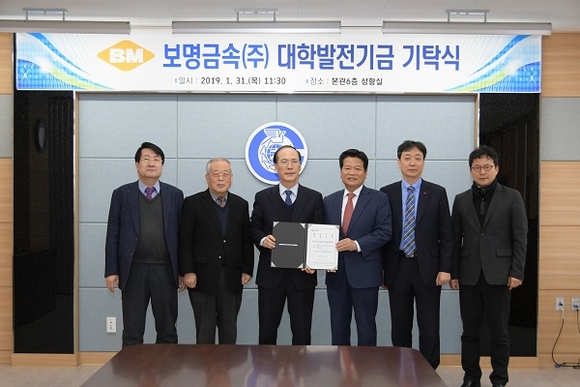 창원대학교는 31일 보명금속(주) 조현욱 대표이사가 후학양성, 대학과 지역사회의 발전 등에 앞장서 달라며 1000만 원의 발전기금을 기탁했다고 밝혔다.