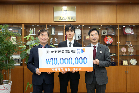 동아대학교는 지난해 2월 경영학과를 졸업한 동문 권준수(28) 씨가 개교 100주년 대비 학교 사랑 캠페인 '동아 100년 동행' 발전기금 1,000만원을 기부했다고 1일 밝혔다.