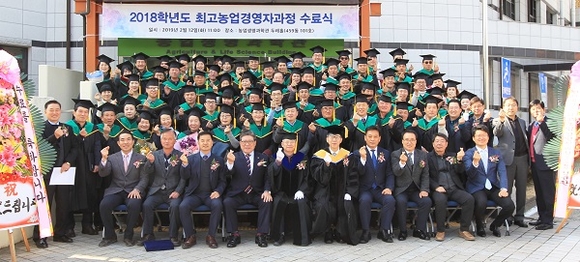 경상대학교 농업생명과학대학은 지난 12일 농업생명과학관 두레홀에서 '2018학년도 제25기 최고농업경영자과정' 수료식을 개최했다.