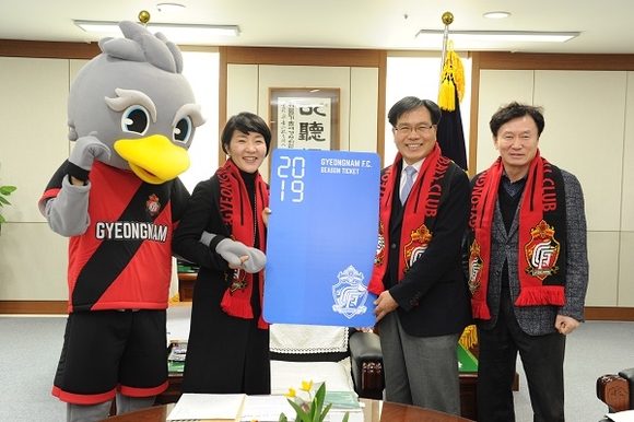 경남도의회 김지수 의장이 경남의 축구 붐 조성을 위해 13일 경남FC 연간 회원권 구매에 동참했다.