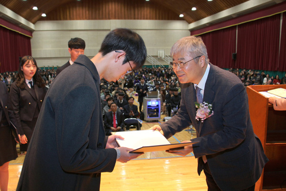 새울본부는 14일 오전 남창고등학교 졸업식에 참석해 7명의 우수 졸업생에게 장학금과 장학증서를 수여했다.