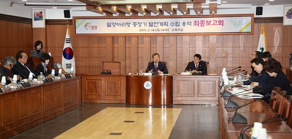 경남 밀양시는 14일 시청 소회의실에서 '밀양아리랑 중장기 발전계획 수립' 용역 최종보고회를 개최했다.
