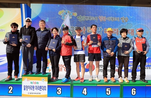밀양시가 주최하고 밀양시육상연맹이 주관한 이번 대회는 9560명이 참가 신청해 작년보다 809명이 늘었다. 부문별로는 하프 3206명, 10km 3517명, 5km 2837명의 마라토너들이 힘찬 레이스를 펼쳤다.