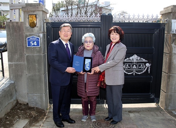 경남 밀양시와 경남동부보훈지청은 25일 독립유공자 김명규의 자녀 김성미씨 자택에서 '독립유공자의 명패 달아드리기' 행사를 가졌다.