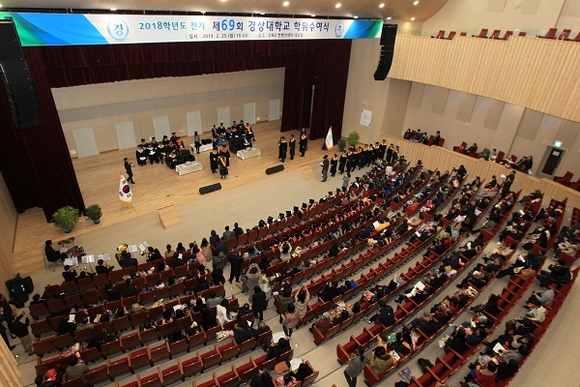 경상대는 이번 학위수여식에서 박사 85명을 비롯해 석사 450명, 학사 2428명을 배출했다. 이로써 개교 70년만에 13만 783명의 개척인을 배출하게 됐다. 학위취득자 중 외국인 유학생은 박사 14명, 석사 28명, 학사 10명이 포함돼 있다.