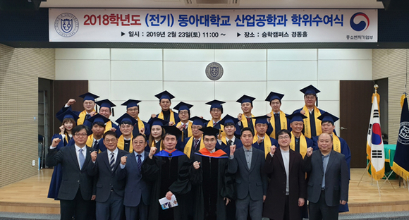 동아대학교 중소기업 계약학과(학사과정)인 산업공학과의 일곱 번째 졸업생이 배출됐다. 동아대는 최근 승학캠퍼스 경동홀에서 학위수여식을 갖고 18명에게 공학사 학위를 수여했다고 27일 밝혔다.
