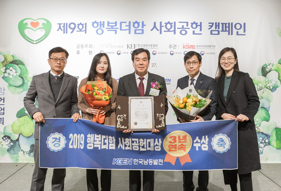 한국남동발전은 27일 서울 조선호텔에서 열린 2019 행복더함 사회공헌대상 시상식에서 교육부 장관상을 수상했다고 밝혔다.