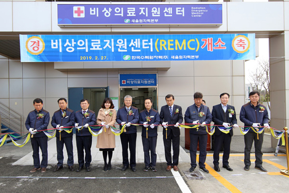 한국수력원자력 새울원자력본부는 27일 새울본부 본관 1층에 '비상의료지원센터(REMC)'를 설립하고, 한상길 새울원자력 본부장과 최승진 방사선보건원장 직무대행, 김수진 원자력의학원 검사원 등이 참석한 가운데 개소식을 개최했다고 밝혔다.
