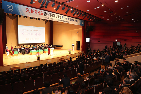 동아대학교는 '2018학년도 전기 석·박사 학위수여식'을 지난 27일 부민캠퍼스 다우홀에서 개최했다고 28일 밝혔다.