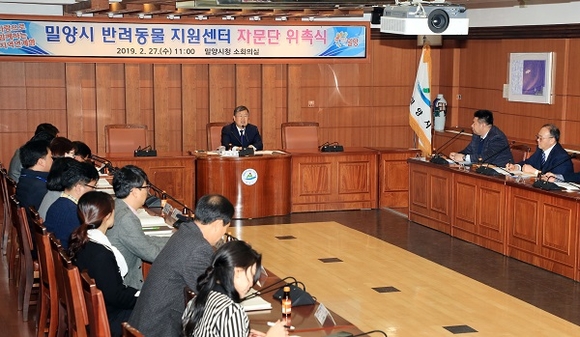 경남 밀양시는 27일 '반려동물 지원센터 자문단' 위원 위촉식과 첫 번째 회의를 개최했다.