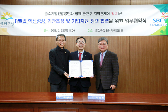 중소기업진흥공단과 금천구청은 28일 서울 금천구청에서 중진공-금천구간 'G밸리 중소벤처기업 혁신성장 기반조성 및 기업지원 정책 협력을 위한 업무협약'을 체결했다고 밝혔다.