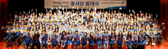 DGB금융그룹 사회공헌재단은 지난 27일 대구은행 제2본점 2층 대강당에서 'With-U 대학생봉사단'과 'DGB금융교육봉사단' 발대식을 실시하고, 3·1절 100주년을 기념한 특별한 전달식을 가졌다고 28일 밝혔다.