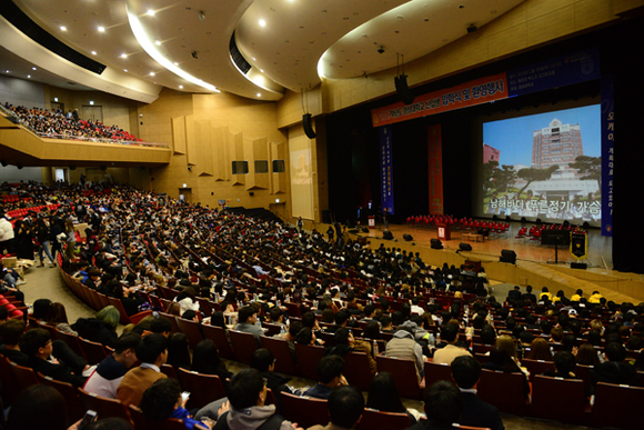 이날 입학식에는 송수건 총장을 비롯한 보직교수, 대학관계자, 신입생 및 학부모 등 약 3,000여명이 참석했다.