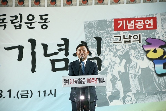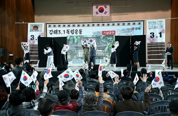 경남 김해시는 1일 오전 11시 문화체육관에서 순국선열과 애국지사들의 숭고한 나라사랑 정신을 되새기고, 후손들에게 나라 사랑하는 마음을 심어주기 위한 '김해 3.1독립운동 100주년 기념식'을 개최했다.