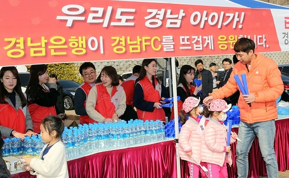 BNK경남은행은 1일 지역 연고 프로축구단의 선전을 기원해 '경남FC 홈 개막전 응원 행사'를 가졌다.