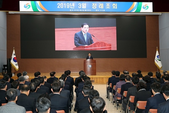 경남 창원시는 4일 창원시청 시민홀에서 직원 300여명이 참석한 가운데 3월 정례조회를 개최했다.