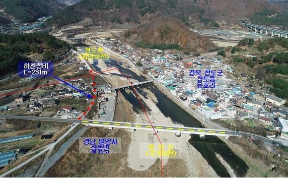 청도군은 공사에 관한 각종 행정절차 등을 완료하고 3월 초 착공하여 연말까지 사업을 마무리 할 계획이다. 청도군에서 시행하는 하천정비에 소요되는 사업비는 약 23억 원이며 사업내용은 하천정비 및 제방축조(L=231m)와 호안정비, 기존 교량의 확장 L=31.4m 등이다.