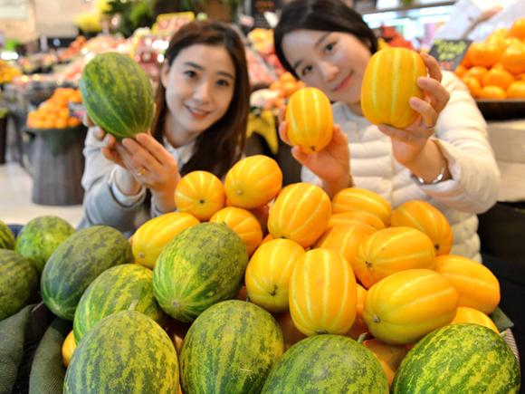 롯데백화점 광복점 지하 1층 식품관에 여름 대표 과일인 참외와 파파야 멜론이 출시돼 선보이고 있다. (사진=롯데백화점 광복점 제공)