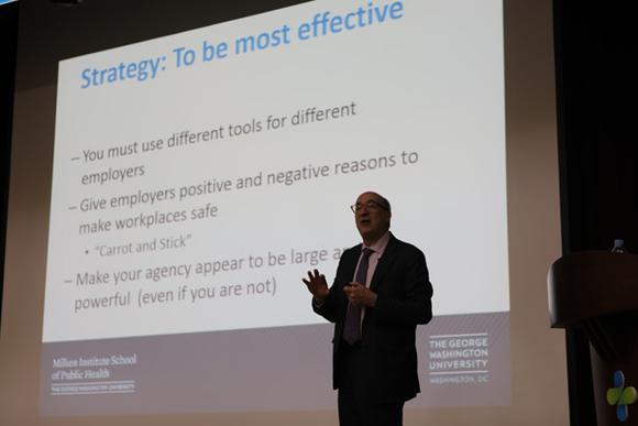 안전보건공단은 지난 11일 조지워싱턴대학교 공공보건학부 교수인 데이비드 마이클스 박사(Dr.David Michaels)를 초청해 내부 직원을 대상으로 미국 산업안전보건청(OSHA)의 산재예방정책을 주제로 한 특강을 실시했다고 밝혔다.