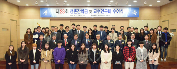 동아대학교는 '제23회 청촌장학금 및 교수연구비 수여식'을 지난 12일 오전 승학캠퍼스 청촌홀에서 개최했다고 13일 밝혔다.